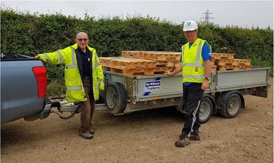 Our Site Manager, Gordon Goldie arranged with John Haigh from Saffron Walden Community Shed to collect a number of the packing materials, such as pallets, sheets of plywood and lengths of timber.